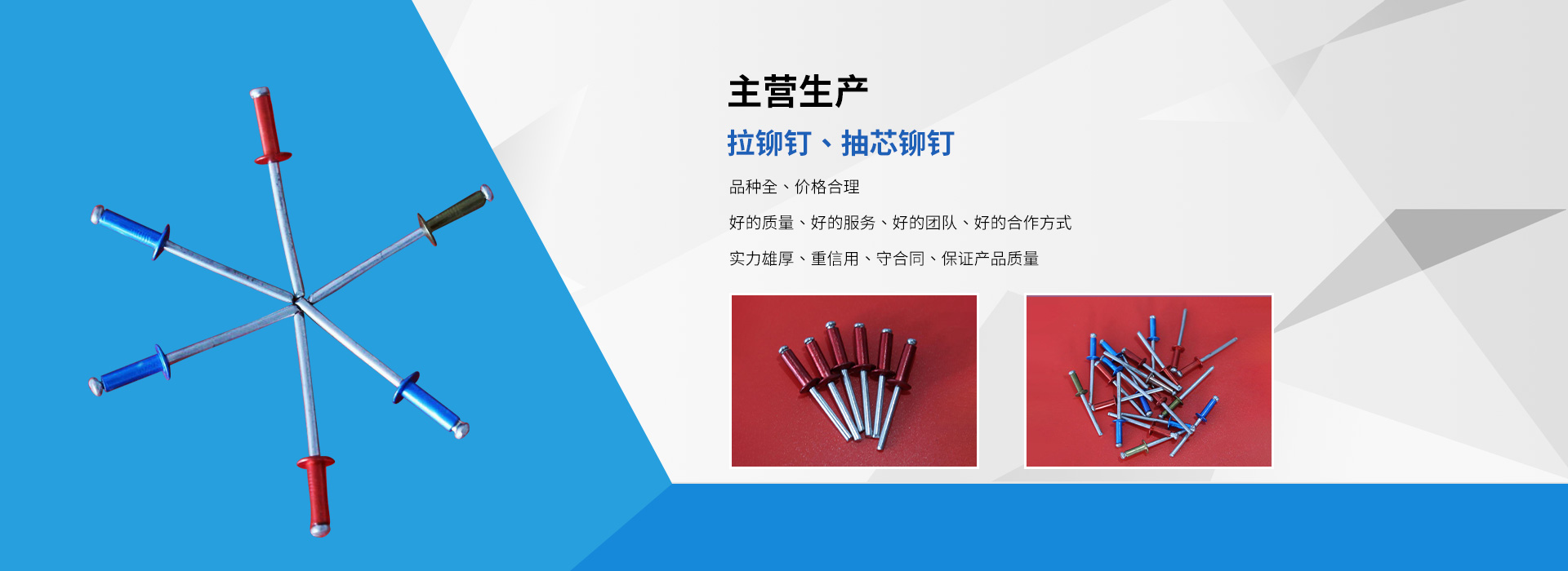 臨沂市龍牌異型鉚釘廠是拉鉚釘、抽芯鉚釘等產(chǎn)品生產(chǎn)加工的個體經(jīng)營,公司總部設(shè)在臨沂市羅莊區(qū),臨沂市龍牌異型鉚釘廠具有完整、科學(xué)的質(zhì)量管理體,公司自成立以來,一直秉承“質(zhì)量為準(zhǔn),客戶至上”的經(jīng)營理念,以產(chǎn)品“品種豐富、價格合理”,在消費(fèi)者當(dāng)中享有較高的身分,得到了廣大消費(fèi)者的信賴與好平,公司并與多家零售商和代理商建立了長期穩(wěn)定的合作關(guān)系,公司實力雄厚,重信用、守合同、產(chǎn)品質(zhì)量放心,以多品種經(jīng)營特色和薄利多銷的原則,歡迎廣大消費(fèi)者前來洽談業(yè)務(wù)!